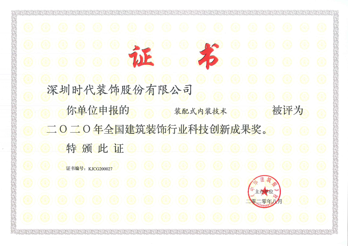 公司獲評為“廣東省裝配式建筑產業基地”,這既是行業對時代裝飾在裝配式領域的研發水平與工藝水準的認可,也是時代多年堅持在裝配式領域探索的成果體現。