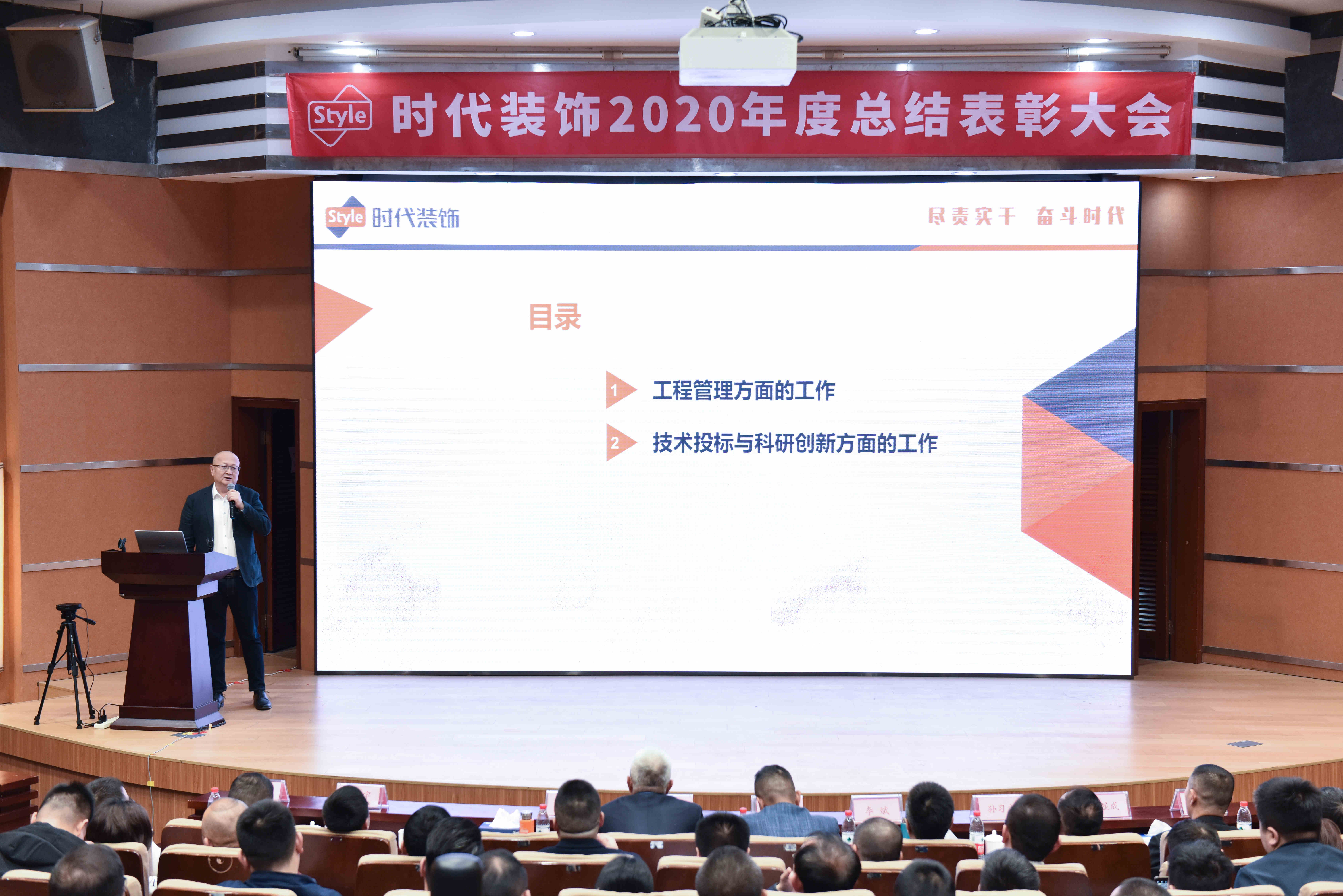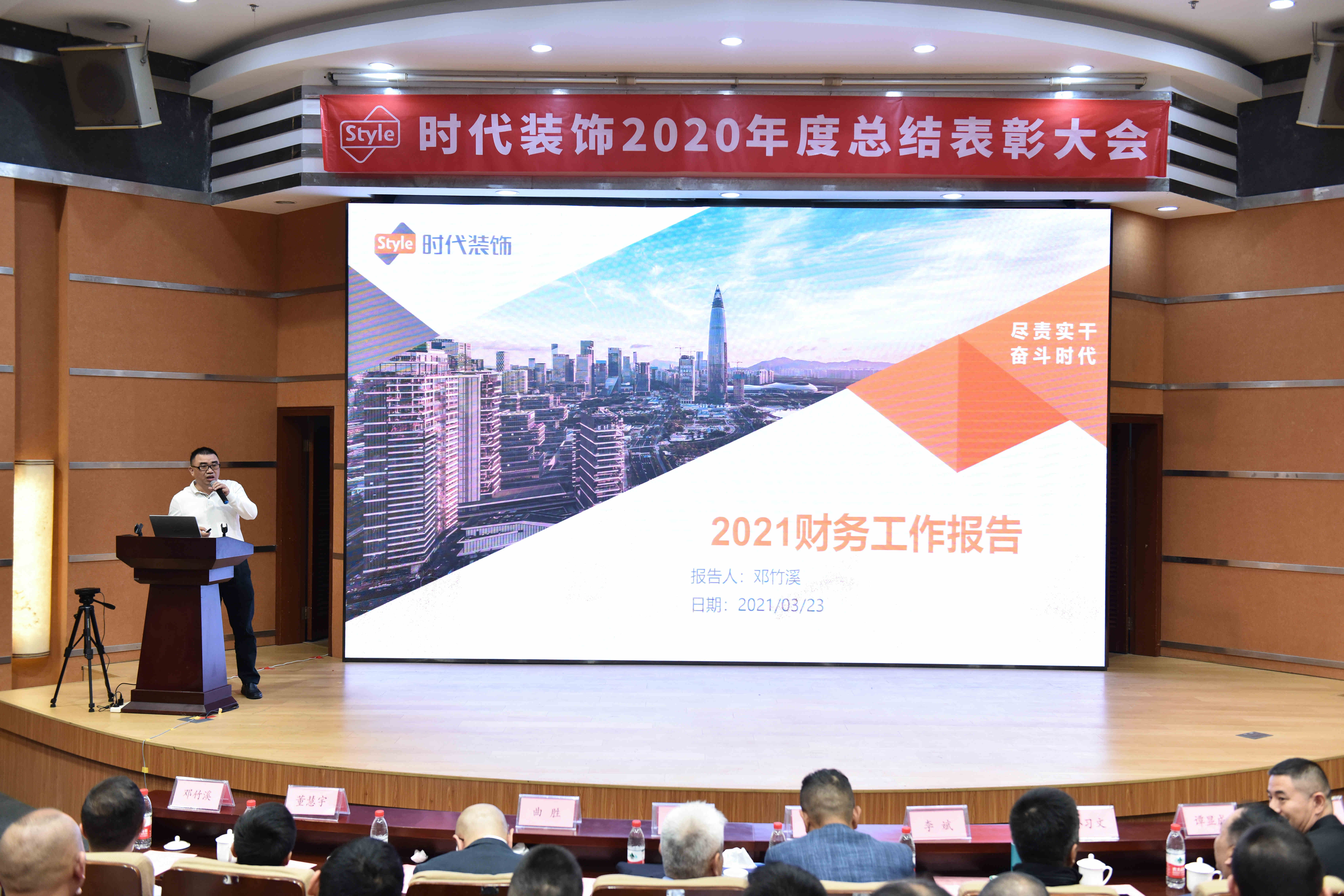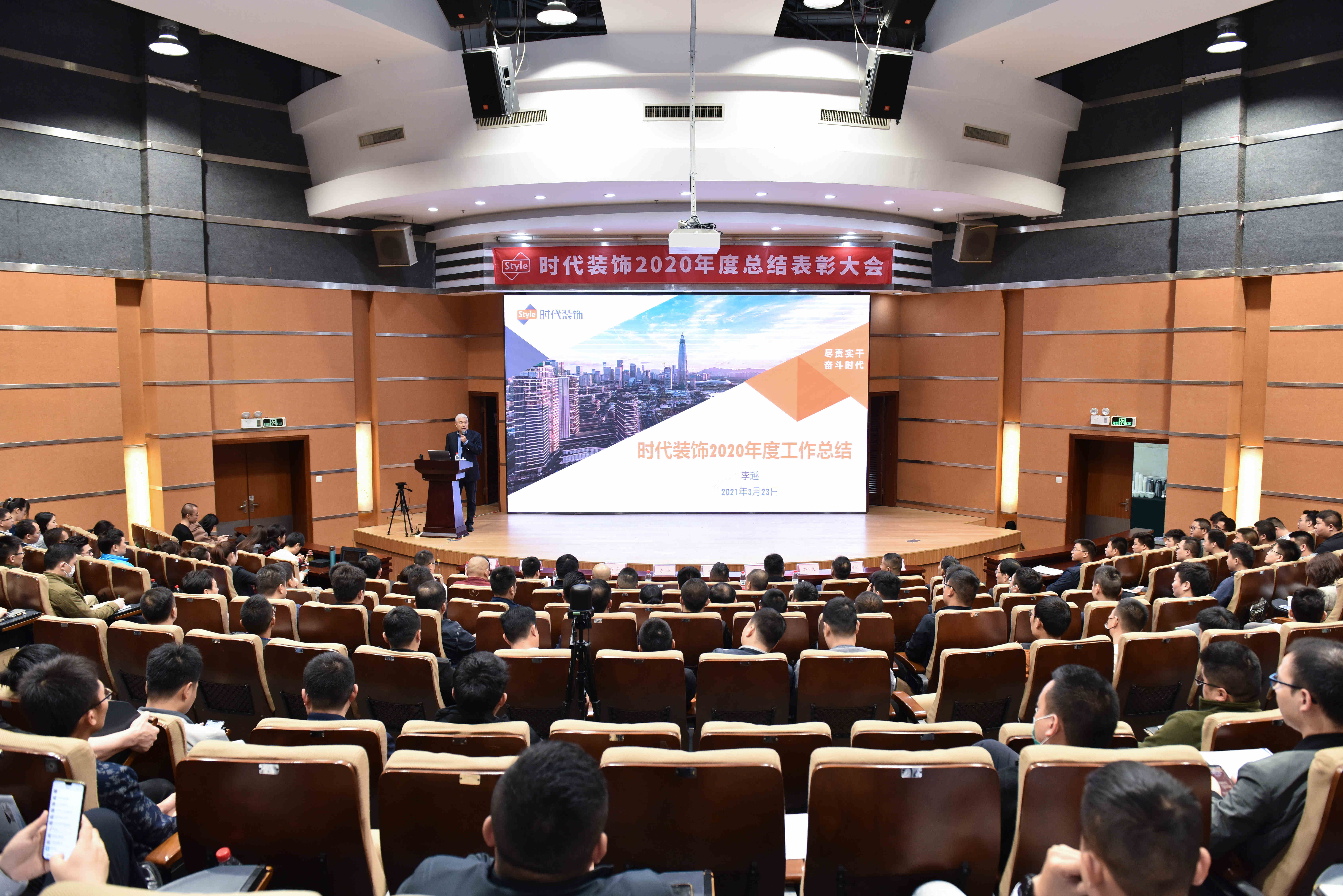 2021年3月23日,時代裝飾2020年度總結表彰大會圓滿舉行,公司董事長曲毅、副董事長李越等公司領導,各事業部、各職能部門負責人以及核心骨干共300余人出席大會。本次大會以“盡責實干,奮斗時代”為主題,回望公司在疫情肆虐的2020年里奮力實干取得的成績,并褒獎以奮斗書寫成就的優秀時代人。
