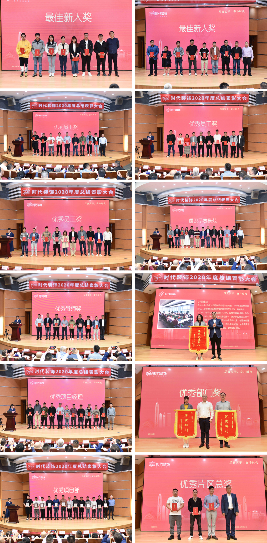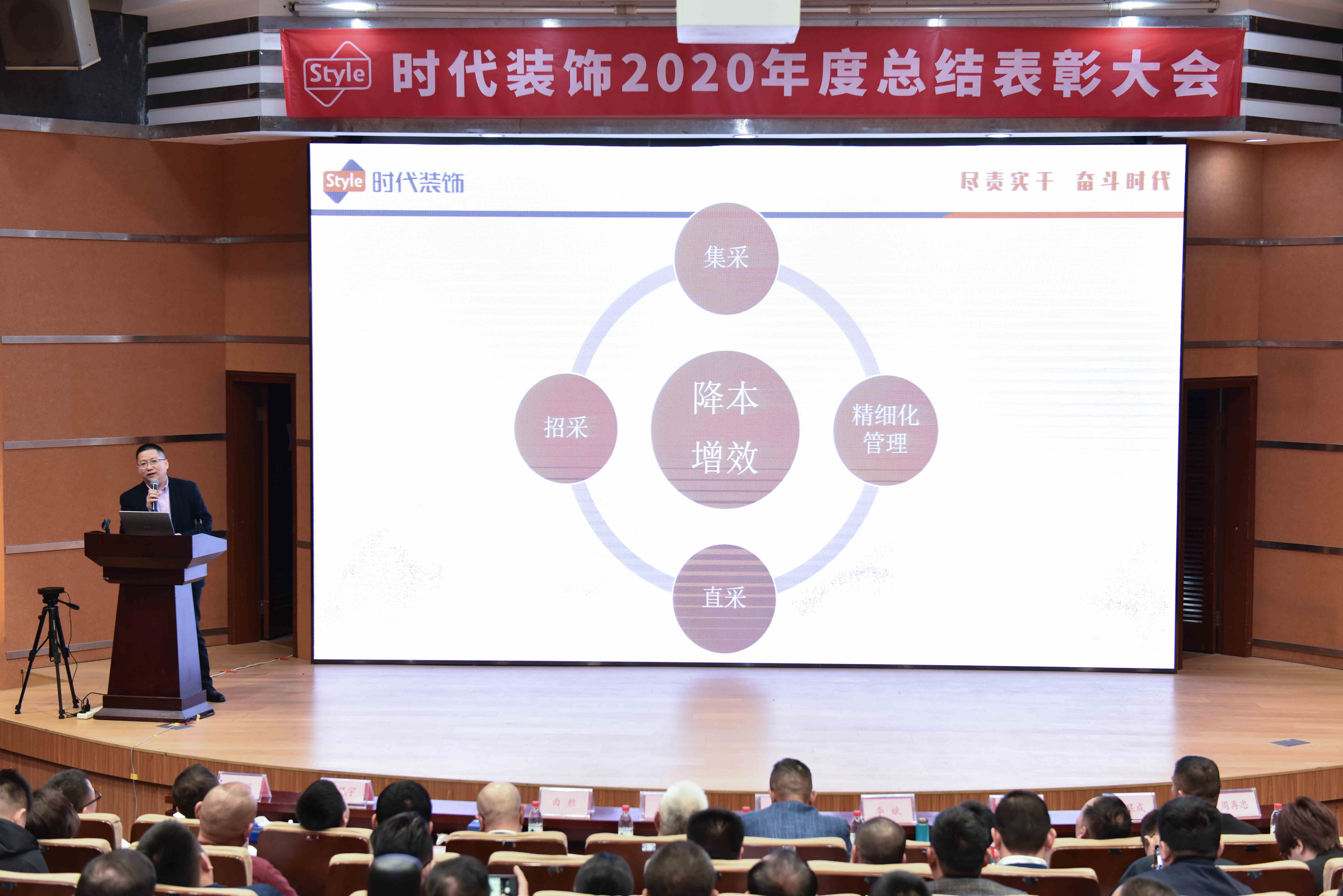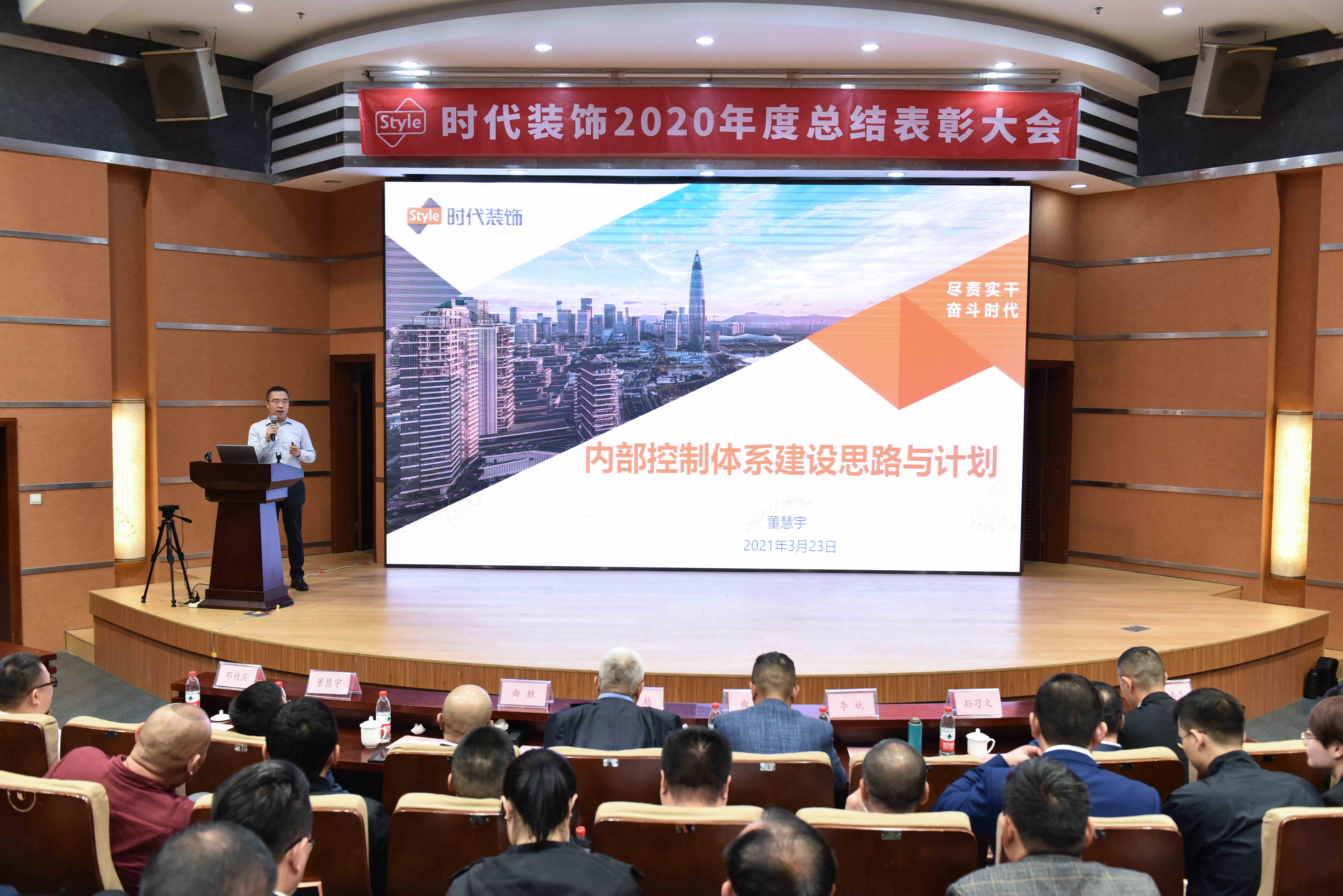2021年3月23日,時代裝飾2020年度總結表彰大會圓滿舉行,公司董事長曲毅、副董事長李越等公司領導,各事業部、各職能部門負責人以及核心骨干共300余人出席大會。本次大會以“盡責實干,奮斗時代”為主題,回望公司在疫情肆虐的2020年里奮力實干取得的成績,并褒獎以奮斗書寫成就的優秀時代人。