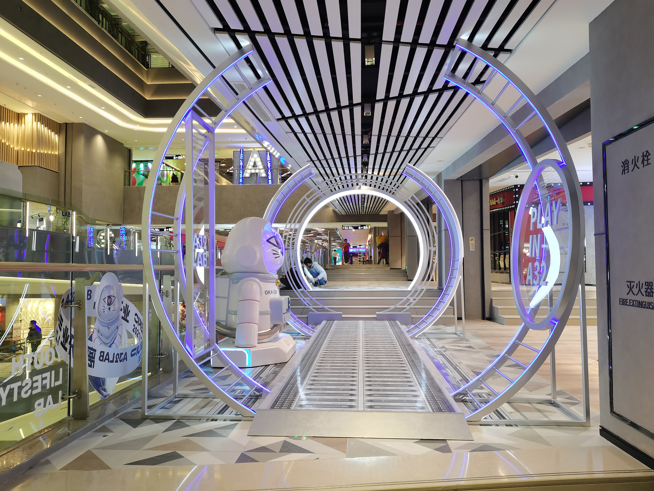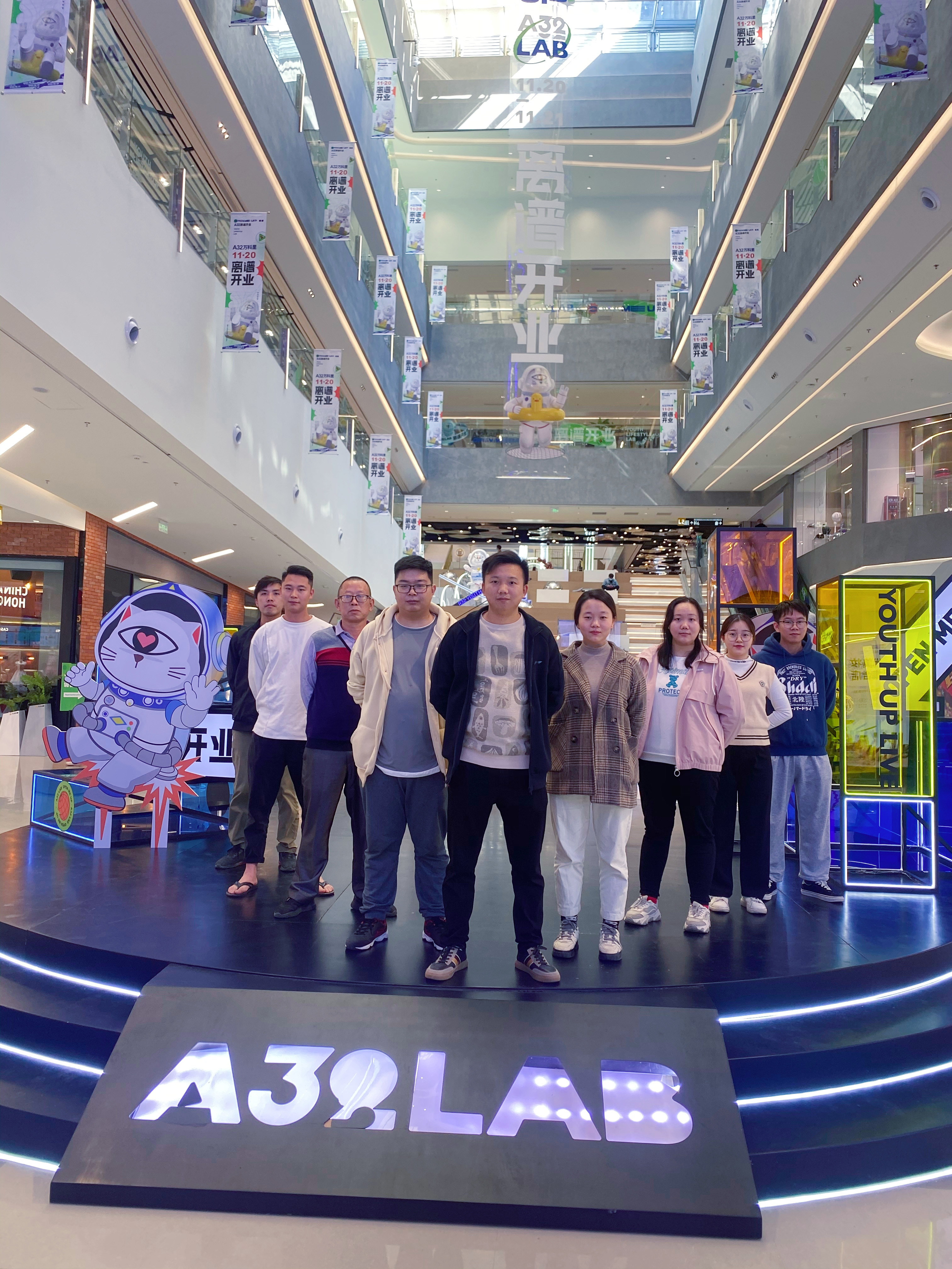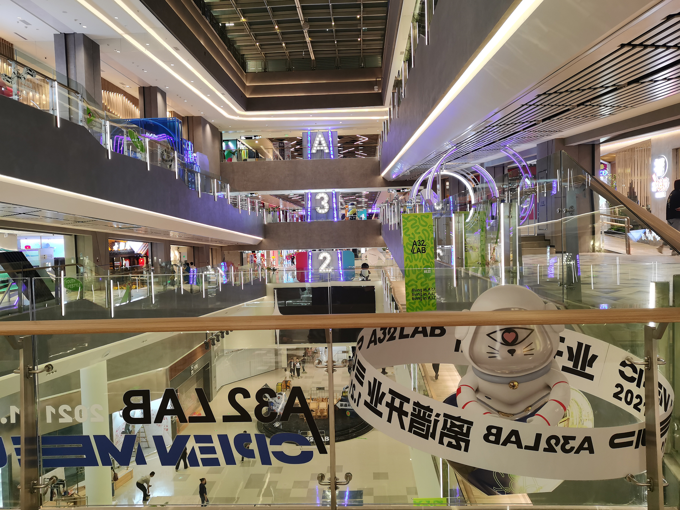 A32在建筑空間上極具特色,擁有“3+1”主題空間——開放式中庭“共享階梯“、“螺旋步道”、“旋轉(zhuǎn)空間”和“花時間主題街區(qū)”,同時結(jié)合A32的潮玩IP形象,打造“失重時空”、“32號空間”、“無差別Lab公共藝術(shù)展”三大主題展覽,呈現(xiàn)出感官與視覺的雙重盛宴。