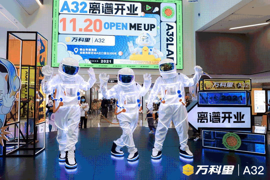2021年11月20日,由時代裝飾承建的A32·萬科里(以下簡稱“A32”),攜手近84家品牌,以100%招商率、95.8%開業(yè)率迎來正式開業(yè)。廣佛市民期待已久,開業(yè)當(dāng)天現(xiàn)場便造起朝圣打卡的涌動浪潮,形成線下吸引8萬+客流,線上社交圈好評刷爆的“離譜”現(xiàn)象。