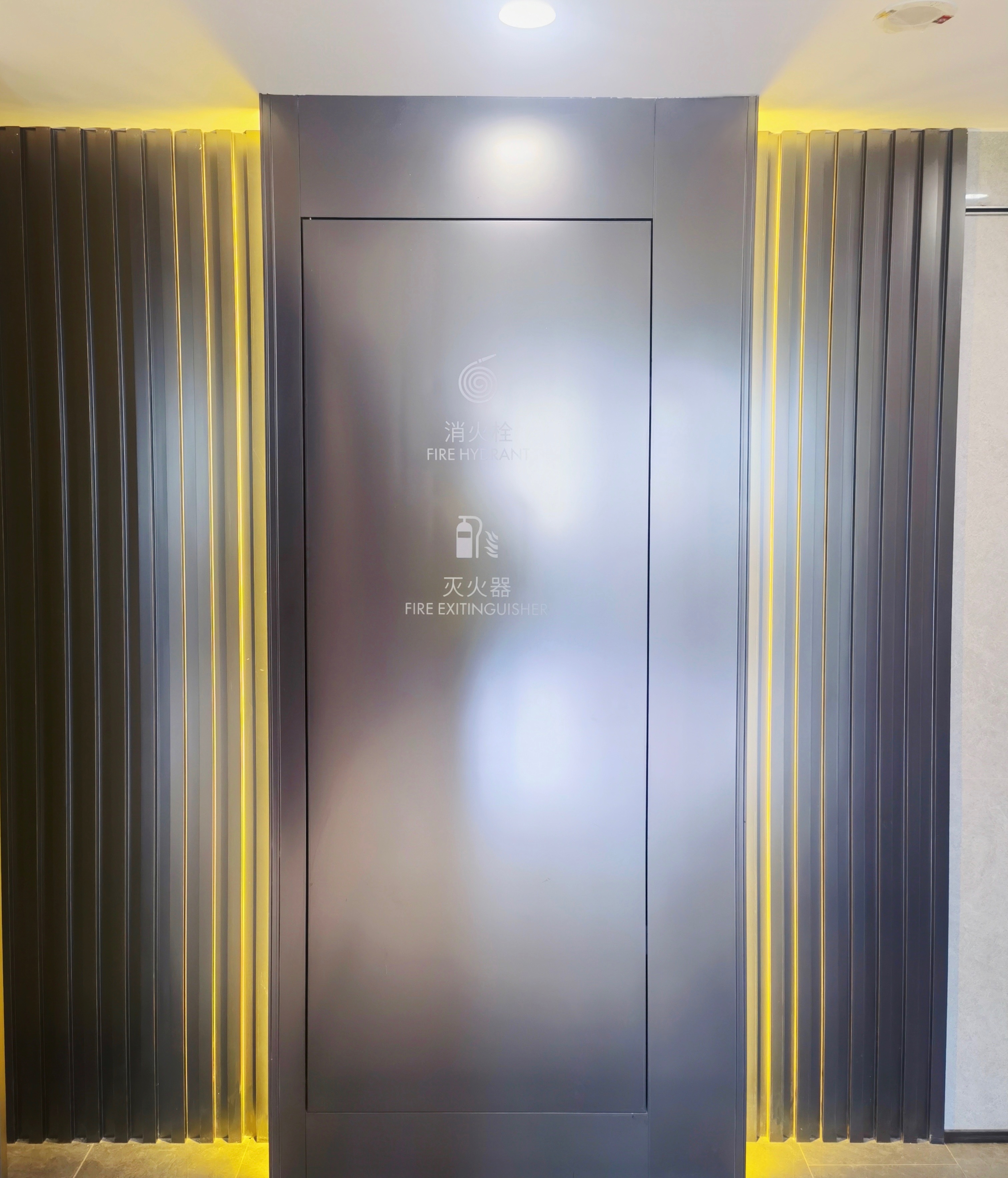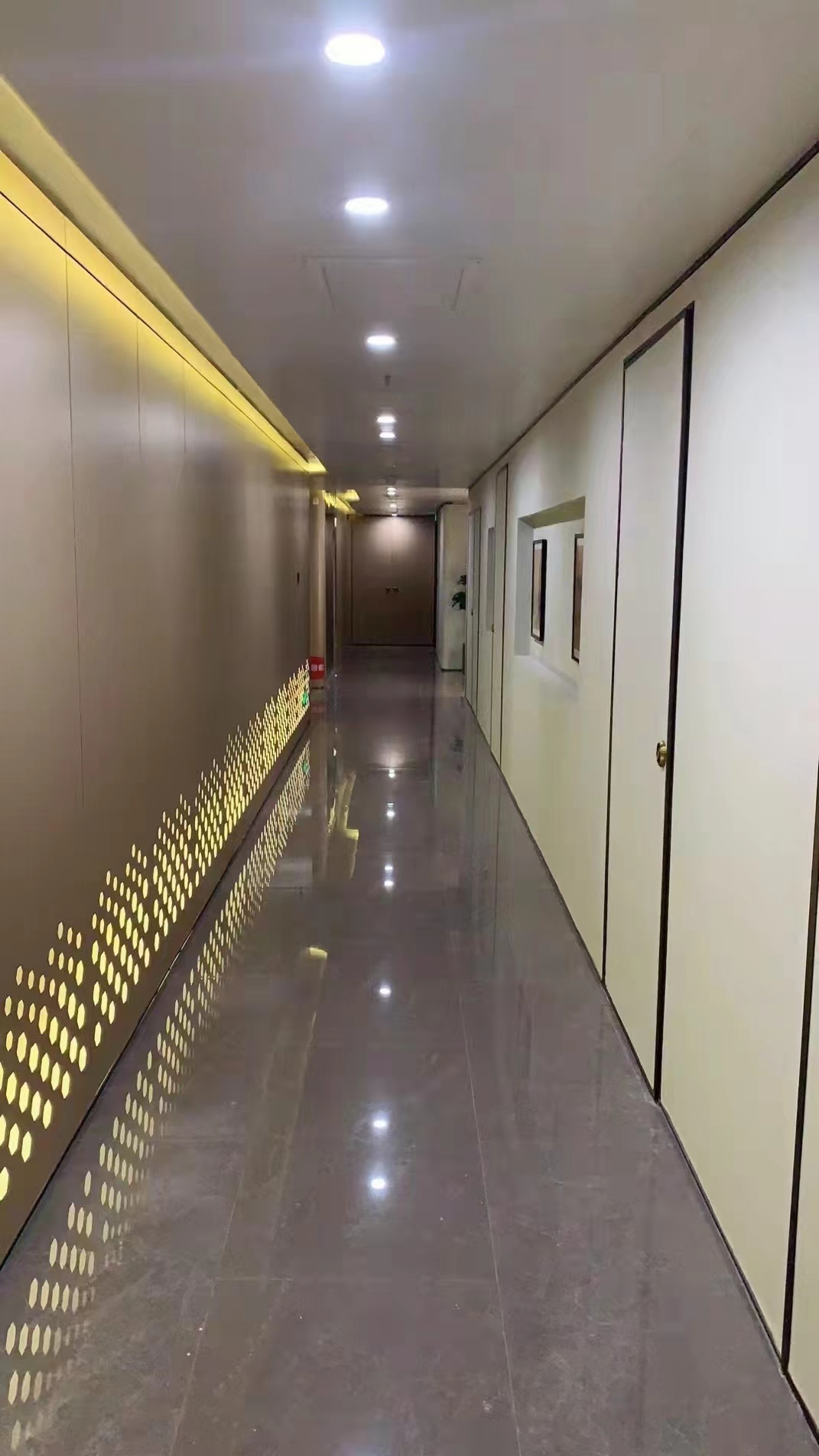 公區施工階段,時代項目人員在項目施工前期就與萬科設計部密切溝通并落實施工圖紙方案,從材料選型定樣到施工落地,設計部全過程參與,追求客戶感知度最大化。標準層公區通過波浪形不銹鋼造型、地面鋪貼弧形石材、瓷磚、簡一點掛墻磚,呈現強烈的觀感視覺效果。地下室通道狹小細長,項目部通過沖孔木飾面造型、基底漆施工、天花弧形鋁板等有效解決了狹小視覺效果問題。