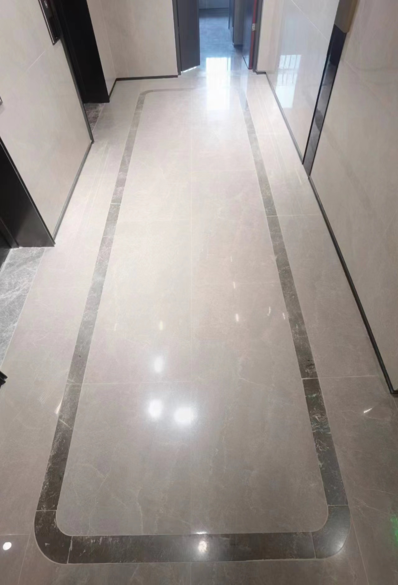 萬科主打高端大板簡一地磚密縫鋪貼,獲得了業主認可。戶內地面的簡一大理石瓷磚,采用密縫鋪貼法工藝,達到了更好的視覺效果。密縫鋪貼并不是無縫施工,而是指磚縫要控制在0.5mm以內。時代項目部從密縫瓷磚樣板房先行到批量施工,嚴格運用工藝樣板0.5mm縫的施工技術,使用專用密縫鋪貼卡片控制磚縫大小、專用定位調平器來控制瓷磚的平整度、專用勾縫劑進行嵌縫施工,避免了錯縫等質量問題,達到密縫整體效果。